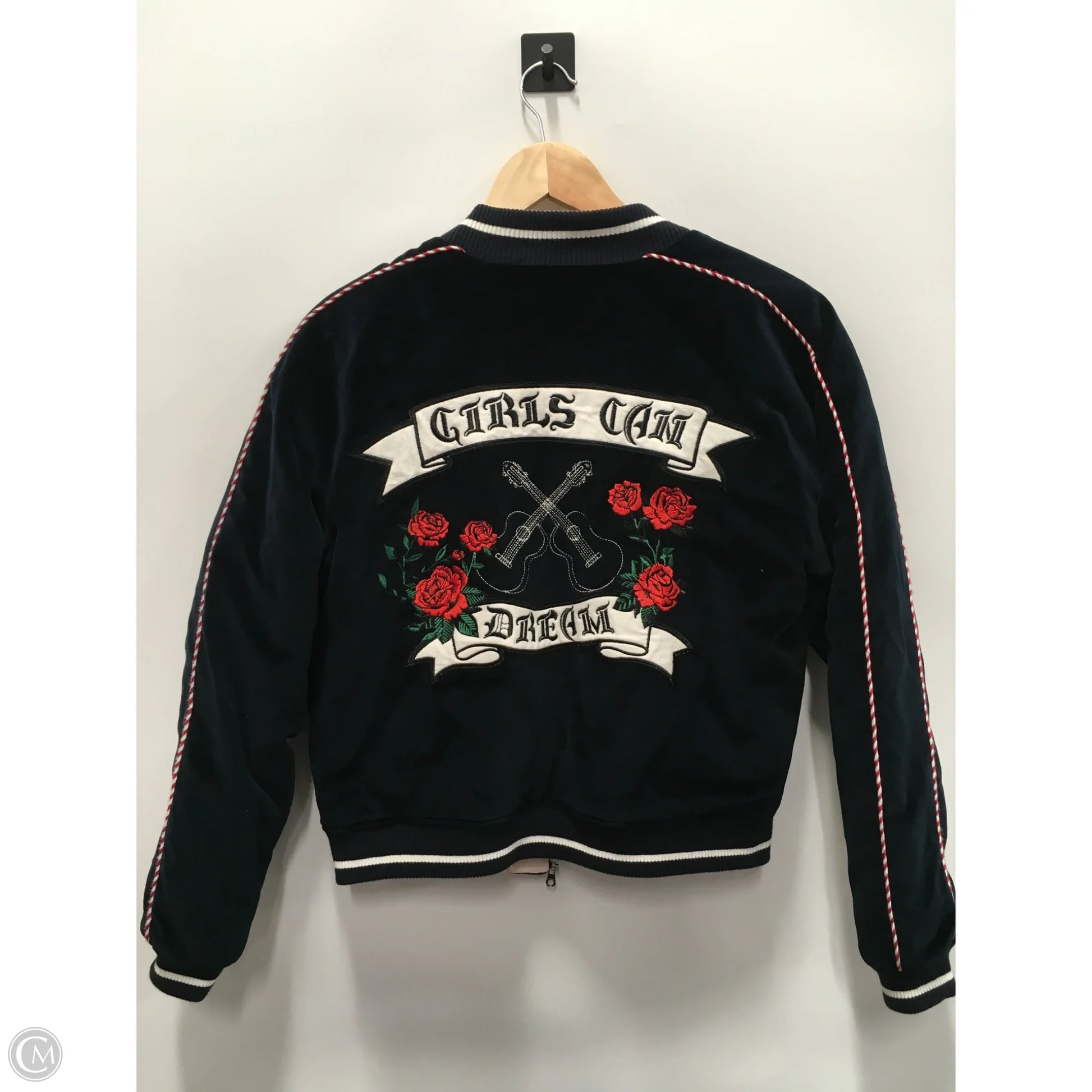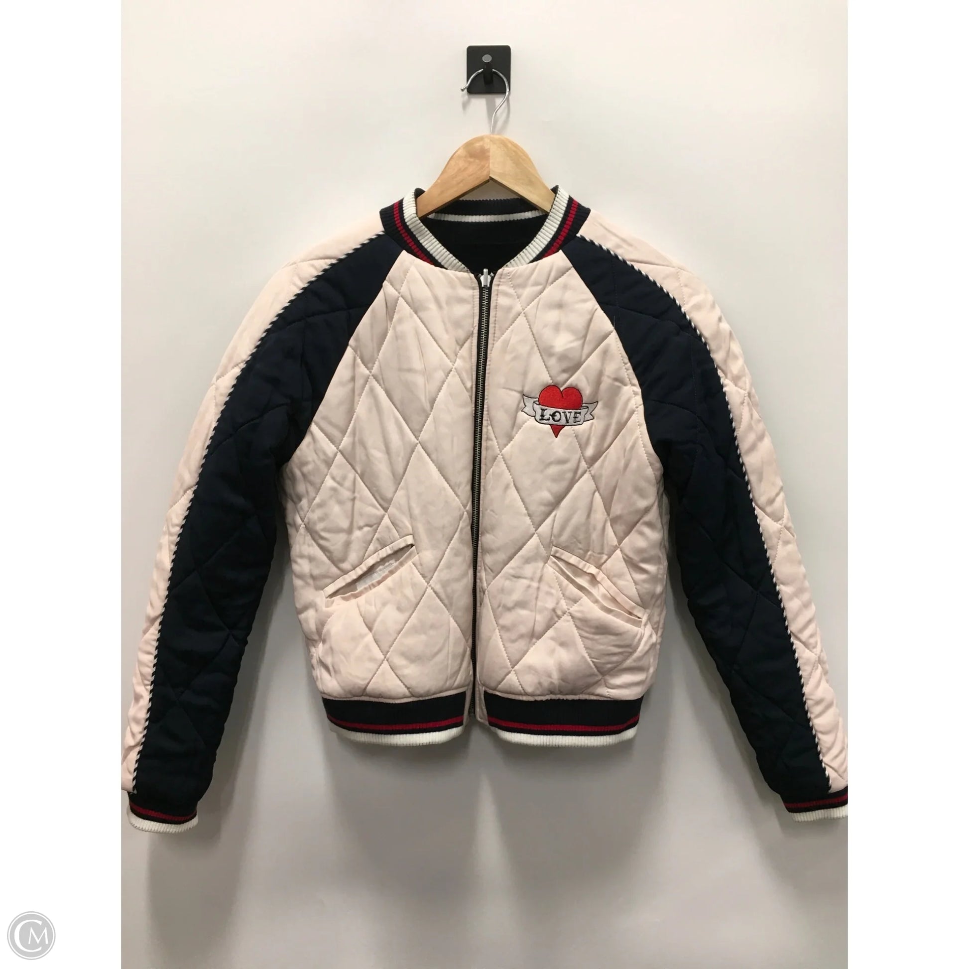 Sandro designer jacket in striking blue and pink, size S for a chic look.