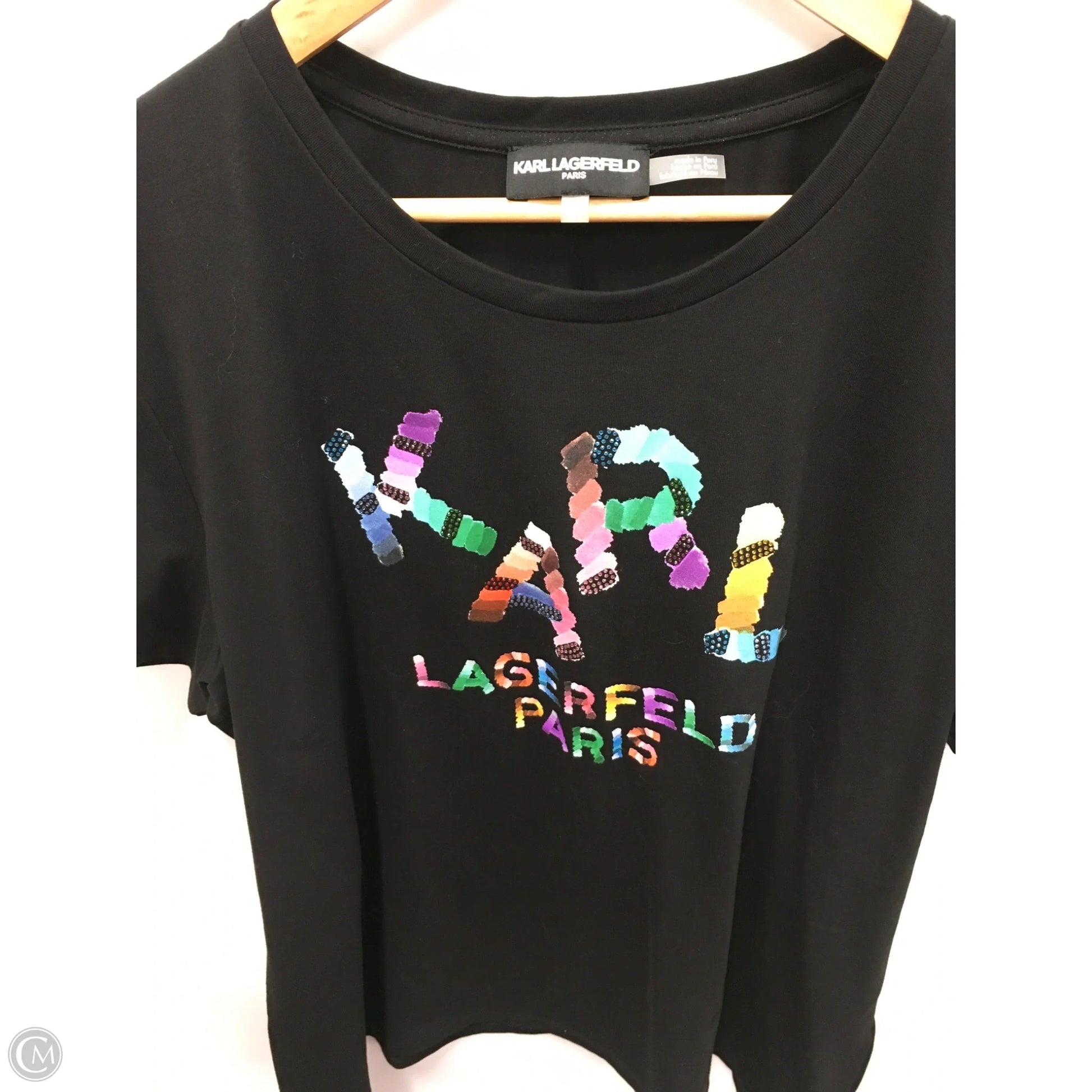 Top Short Sleeve Designer By Karl Lagerfeld In Black, Size: Xl
